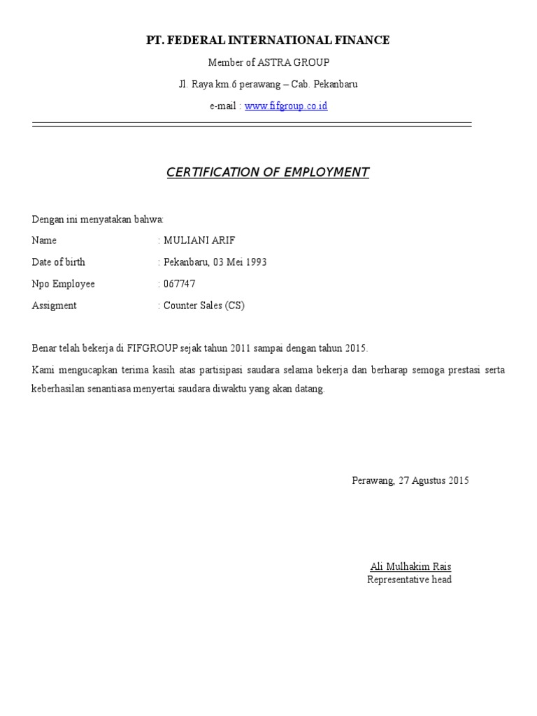 Surat Pengalaman Kerja Fifgroup Pdf